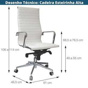 Cadeira Escritório Giratória Alta Esteirinha Aço Preto Poliuretano (pu) Caramelo Base Rodízio Preto A Cadeira Alta Office Esteirinha é a síntese perfeita de resistência, durabilidade, versatilidade e conforto. Inspirada nos célebres designs de Charles e Ray Eames, ela integra sofisticação e funcionalidade, sendo ideal tanto para ambientes de escritório quanto para espaços versáteis. Sua estrutura robusta com base em aço pintado garante uma longa vida útil, enquanto o assento em poliuretano (PU) oferece um conforto superior. O encosto alto proporciona suporte adicional, tornando-a a escolha ideal para quem busca um design elegante sem abrir mão do bem-estar e da praticidade no dia a dia. Sempre sem abrir mão do conforto e sofisticação, a Or Design é importadora de móveis perfeita para quem procura qualidade, design e charme. Desde móveis para decoração em geral até móveis para escritório a Or Design oferece o que há de melhor no mercado. Encontre aqui o móvel perfeito para o seu ambiente. Cor: Caramelo | Materiais: Poliuretano | Estilo de Decoração: Moderno | Linha: Esteirinha | Marca: Ór Design | Peso Suportado: 120.00 | Tipo de Base: Rodízio | Atributos: Confortável, Prática, Versátil | Área de Uso: Interna | (tempo): 6 meses | (descritivo): contra defeitos de fabricação de 06 meses. Consulte as nossas políticas. | Peso: 15.50 | Medidas: Largura (cm): 61.00 | Medidas: Profundidade (cm): 46.50 | Medidas: Altura (cm): 114.00 | Medidas: Altura até o Assento (cm): de 49.00 a 57.00 | Medidas: Altura até o Braço (cm): De 65.00 a 71.00 | Medidas: Regulagem de altura (cm): De 106 a 114.00 | Possui Braços?: Sim | Possui Braços Reguláveis?: Não | Possui Regulagem de Altura?: Sim | Entregue Montado?: Não | Possui Manual de Montagem?: Acompanha o Produto | Origem do Produto: Importado | Conservação e Manutenção: Limpeza com pano úmido em solução de água e detergente neutro. Secar em seguida. | Acabamento: Fosco | Possui Estrutura Giratória?: Sim | Tipo de Assento: Fixo | Tipo de Encosto: Presidente | Estado de Origem: SP | Conteúdo da Embalagem: 01 Cadeira | Produto: Cadeira Escritório Giratória Alta Esteirinha Or Design Poliuretano (PU) Caramelo Base Rodízio Preto | Tonalidade: Marrom | Ambiente indicado: Escritório | Material da estrutura: Metal | Montagem: Desmontado | Capacidade de Peso: 120