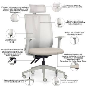 Equipada com um mecanismo Evolution, um sistema de contato permanente, essa cadeira giratória abraça as suas necessidades, permitindo ajustes precisos na altura do assento, do encosto e dos braços. Cada detalhe foi pensado para proporcionar um suporte ideal, respeitando o biotipo do usuário e promovendo uma postura saudável durante longas horas de trabalho. Já a base pirâmide, adornada com rodízios em PU e sistema anti-risco, desliza suavemente sobre qualquer superfície, garantindo movimentos ágeis e seguros. Por fim, o encosto com apoio de cabeça completa a experiência, permitindo que você se concentre no que realmente importa, enquanto sua mente flui livremente.