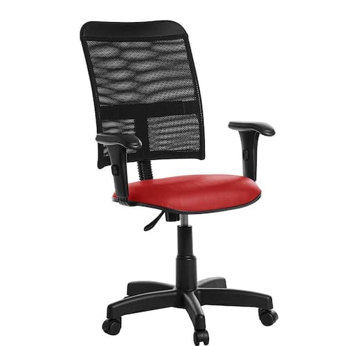 Cadeira escritório giratória tela com braço rce vermelho Ideal para ambientes como: escritórios, corporativo, home office, consultórios, etc. Especificações: Revestimento: Cor do revestimento: vermelho; Tipo de revestimento: material sintético; Malha: 50% poliéster e 50% algodão; Composição superficial: 93,2% pvc e 6,8% poliuretano; Espessura aproximada: 0,12 cm +/-11% ; Detalhamento do assento: Espuma injetada de poliuretano; Largura 46 cm x espessura 5 cm x profundidade 42 cm; Detalhamento do encosto: Estrutura em aço preta revestida com tela mesh; Largura 45 cm x espessura 2 cm x altura 54 cm; Componentes da base giratória: Flange em aço preta; Pistão a gás preto, permite regulagem da altura; Estrela em aço com capa preta; Rodízios em nylon; Base possui raio externo de 28,5 cm, raio útil de 28 cm; Parafusos philips para montagem; Dimensões e peso montado: Altura do assento referente ao piso, mínima 42 cm, máxima 53 cm; Altura do topo do braço referente ao piso, mínima 59 cm, máxima 71 cm; Peso líquido aproximado: 11 kg; Peso bruto aproximado: 11,5 kg; Peso suportado: 110 kg uniformemente distribuídos; Dimensões da caixa: Largura 60 cm x profundidade 60 cm x altura 20 cm; Componentes inclusos: 01 assento executivo; 01 encosto em tela mesh; 01 suporte de encosto com capa preto; 01 flange em aço preta; 01 pistão com capa preta; 01 estrela em aço com capa preta; 05 rodízios em nylon preto; 02 braços reguláveis pretos; Parafusos para montagem philips; Manual de montagem. Montagem: A montagem deve ser realizada pelo cliente seguindo o manual de montagem. : 180 dias contra defeitos de fabricação, previstos em lei; Obs: Pode haver variação de tonalidade referente ao lote do revestimento conforme a resolução de computadores e smartfones.