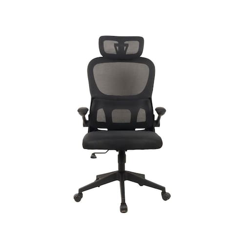 Possui superfície em malha, apoio de cabeça e braços ajustável, estrutura em polipropileno. Suporta até 100kg. Rodas em polipropileno classe 3, mecanismo borboleta.