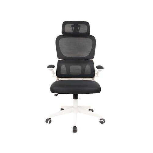 Possui superfície em malha, apoio de cabeça e braços ajustável, estrutura em polipropileno. Suporta até 100kg. Rodas em polipropileno classe 3, mecanismo borboleta.