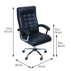 Cadeira Oslo 3321 A Cadeira Office Oslo OR Design é uma cadeira diferenciada da linha office. Ideal para aperfeiçoar e deixar o seu escritório ou sala de reuniões ainda mais confortável. Este modelo é extremamente elegante e inovador. Composição/Material: Assento em molas Pés/Base: Rodízio Cromado Assento Giratório Peso do Produto: 6 kg Peso Máximo Suportado: 100 kg Produto Entregue Desmontado (Necessita de Montagem) Acompanha peças + manual para montagem. Garantia contra defeitos de fabricação: 6 meses Dimensões da Cadeira Office Oslo OR Design: Largura: 64 cm Profundidade: 60 cm Altura: 52 - 60 cm Altura do chão ao encosto: 113 - 121 cm Altura do chão ao braço: 70 - 78 cm