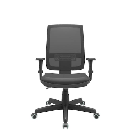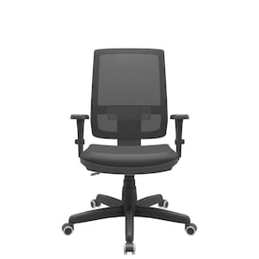 Braços: 3D - Revestido externamente em polipropileno Material Termoplástico de alta resistência , com estrutura interna em aço, regulagem de altura com botão alcançando até 70 mm de curso. Regulagem horizontal com curso de 22 mm de avanço ou recuo do do apoia braços, conta ainda com a regulagem de giro de até 24o de rotação para cada sentido contribuindo para uma boa postura e ergonomia do usuário.