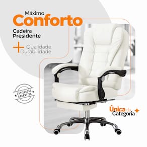 Isso é possível por conta do seu encosto reclinável que permite você regular os diferentes pontos de inclinação. Possui apoio para os braços ajustáveis que ajuda a favorecer sua postura. A própria cadeira conta com ajuste de altura, para que você consiga deixar ela na altura que mais lhe agrada e com ela seus movimentos se tornam mais fáceis, pois as rodas te auxiliaram e ela também e giratória, permitindo que você gire 360°. Para aumentar ainda mais o conforto, este modelo possui extensão para apoio dos pés, proporcionado mais opções de posições.