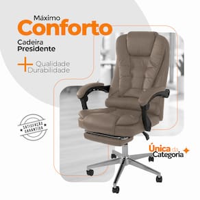 A Cadeira Presidente Ergonômica com Apoio para Pés é perfeita para quem deseja elevar o nível de conforto e performance no dia a dia. Combinando ajuste, acolhimento, resistência e design moderno, ela transforma seu espaço em um ambiente mais produtivo, bonito e confortável.