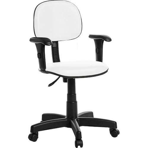 Cadeira de Escritório Giratória Secretária com BraçoIdeal para ambientes como: Escritórios, Corporativo, Home Office, Consultórios, etc. Especificações: Revestimento:Cor do Revestimento: Bege.Tipo de Revestimento: Couro Ecológico.Malha: 50% Poliéster e 50% Algodão;Composição Superficial: 93,2% PVC e 6,8% Poliuretano;Espessura aproximada: 1,2 mm +/-11% ; Detalhamento do Assento:Espuma Injetada de Poliuretano; Largura 425 mm X Espessura 50 mm X Profundidade 385 mm; Detalhamento do Encosto:Espuma Injetada de Poliuretano;Largura 365 mm X Espessura 40 mm X Altura 295 mm; Componentes da Base Giratória:Flange em aço Preta;Estrela em Aço com Capa Preta;Rodízios em Nylon;Pistão a gás Preto, permite regulagem da altura;Base possui raio externo de 285 mm, raio útil de 262,5 mm;Parafusos Philips para Montagem;Dimensões e Peso montado:Altura do assento referente ao piso, miníma 420 mm, máxima 530 mm;Altura do topo do braço referente ao piso, mínima 590 mm, máxima 710 mm;Peso aproximado: 10,8 kg;Peso suportado: 110 kg Uniformemente Distribuídos; Dimensões da Caixa:Largura 590 mm X Profundidade 580 mm X Altura 200 mm; Componentes Inclusos: 01 Assento Secretaria; 01 Encosto Secretaria; 01 Suporte de Encosto com Capa Preto; 01 Pistão com Capa Preta; 01 Estrela em Aço com Capa Preta; 05 Rodízios Nylon Preto; 02 Braços Reguláveis Pretos; Parafusos para montagem ¼ Philips; Manual de Montagem. Montagem: A montagem deve ser realizada pelo cliente seguindo o manual de montagem.Garantia: 180 dias contra defeitos de fabricação, previstos em Lei; Obs: Pode haver variação de tonalidade referente ao lote do revestimento e a resolução de Computadores e Smartfones.