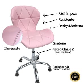 Cadeira Escritório Slim Vegas Base Giratória Estofada Rosa Quartzo -
