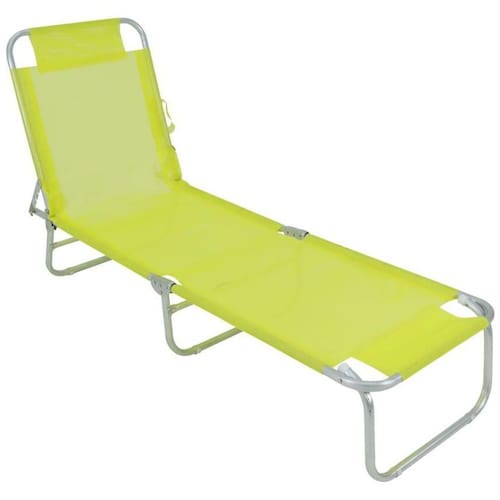 Feita com estrutura de alumínio resistente, essa espreguiçadeira é leve, fácil de transportar e pode ser dobrada, ocupando pouco espaço. Com sapatas antiderrapantes e alça para facilitar o transporte, essa espreguiçadeira é perfeita para relaxar em qualquer lugar. A tela 100% Textilene, com revestimento em PVC, proporciona durabilidade e conforto. O sistema de catraca ajustável permite escolher entre 4 posições de inclinação. Suporta até 100kg. Medidas: 1,65 m x 60 cm x 84 cm posição totalmente inclinada e 1,98 m x 60 cm x 42 cm posição reta . Cor: Amarelo. Marca: Não Informado