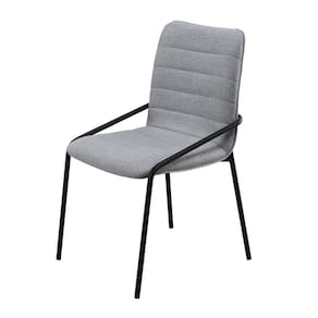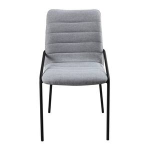 Cadeira Estofada com Costura Decorativa e Base em Aço Carbono Pintura Epóxi – Helô Exclusiva Linho Cinza - Preto Fosco Epóxi -