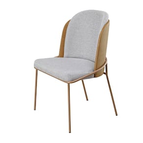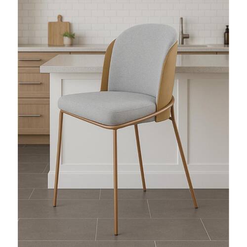 Cadeira Estofada Compossê com Base em Aço Carbono Pintura Epóxi – Maya Exclusiva Linho Lincoln Cinza - Champanhe Epóxi -