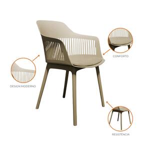 Estrutura em polipropileno (PP), material durável e leve, com assento estofado em poliuretano (PU), proporcionando excelente conforto.