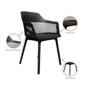 Estrutura em polipropileno (PP), material durável e leve, com assento estofado em poliuretano (PU), proporcionando excelente conforto.