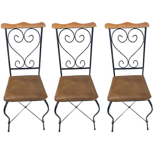 Procurando por cadeiras elegantes e confortáveis para sua cozinha? Então você precisa conhecer a Cadeira de Ferro Estofada Impermeável Artesanal.Totalmente feitas à mão por um artesão experiente, cada uma dessas cadeiras é um verdadeiro exemplo de qualidade e atenção aos detalhes.A estrutura das cadeiras é feita em ferro com pintura eletrostática que não enferruja, possui reforços estruturais que aumentam ainda mais a resistência das cadeiras, que são testadas até 150kg.O assento acolchoado é feito com material resistente e ótimo acabamento, sua espuma de boa qualidade não irá ceder.Feita para durar, todos estes detalhes garantem que as suas cadeiras sejam usadas por muitos anos sem perder sua beleza O projeto ergonômico com muito conforto no encosto e o assento acolchoado agrega um conforto extra, proporcionando uma experiência incrível para você e seus convidados durante as refeições.O estofado impermeável dessas cadeiras é ideal para quem busca praticidade e facilidade na limpeza, tornando-as uma excelente opção para quem tem crianças ou animais de estimaçãoE para proteger o seu piso, as cadeiras possuem pezinhos de plástico emborrachado que não deixam riscosO design das cadeiras é realmente bonito e sofisticado, com um coração feito em arabesco no encosto, com acabamento em madeira maciça.Além de outro detalhe incrível: com o assento é feito em couro ecológico na mesma tonalidade da madeira que harmoniza perfeitamente com a estrutura de ferro das cadeiras, criando um conjunto elegante e moderno.Esses detalhes de acabamento mostram o cuidado e a atenção que o artesão teve ao criar essas peças únicas, garantindo uma qualidade superior e durabilidade às cadeiras, agregando ainda mais valor à decoração da sua cozinha.Não perca mais tempo procurando por cadeiras de qualidade, Cadeira de Ferro Estofada Impermeável Artesanal é a escolha certa para quem quer qualidade, conforto, beleza e durabilidadeMedidas da cadeira:Largura total 40 cmComprimento 40 cmAltura do encosto 51 cmAltura do assento 47 cmAltura total 97 cmLargura do assento 37 cmComprimento do assento 37 cm