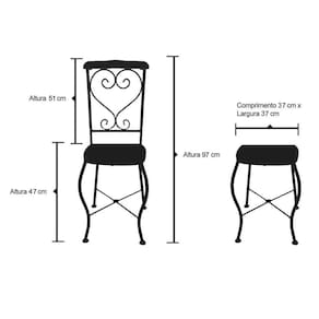 Procurando por cadeiras elegantes e confortáveis para sua cozinha? Então você precisa conhecer a Cadeira de Ferro Estofada Impermeável Artesanal.Totalmente feitas à mão por um artesão experiente, cada uma dessas cadeiras é um verdadeiro exemplo de qualidade e atenção aos detalhes.A estrutura das cadeiras é feita em ferro com pintura eletrostática que não enferruja, possui reforços estruturais que aumentam ainda mais a resistência das cadeiras, que são testadas até 150kg.O assento acolchoado é feito com material resistente e ótimo acabamento, sua espuma de boa qualidade não irá ceder.Feita para durar, todos estes detalhes garantem que as suas cadeiras sejam usadas por muitos anos sem perder sua beleza O projeto ergonômico com muito conforto no encosto e o assento acolchoado agrega um conforto extra, proporcionando uma experiência incrível para você e seus convidados durante as refeições.O estofado impermeável dessas cadeiras é ideal para quem busca praticidade e facilidade na limpeza, tornando-as uma excelente opção para quem tem crianças ou animais de estimaçãoE para proteger o seu piso, as cadeiras possuem pezinhos de plástico emborrachado que não deixam riscosO design das cadeiras é realmente bonito e sofisticado, com um coração feito em arabesco no encosto, com acabamento em madeira maciça.Além de outro detalhe incrível: com o assento é feito em couro ecológico na mesma tonalidade da madeira que harmoniza perfeitamente com a estrutura de ferro das cadeiras, criando um conjunto elegante e moderno.Esses detalhes de acabamento mostram o cuidado e a atenção que o artesão teve ao criar essas peças únicas, garantindo uma qualidade superior e durabilidade às cadeiras, agregando ainda mais valor à decoração da sua cozinha.Não perca mais tempo procurando por cadeiras de qualidade, Cadeira de Ferro Estofada Impermeável Artesanal é a escolha certa para quem quer qualidade, conforto, beleza e durabilidadeMedidas da cadeira:Largura total 40 cmComprimento 40 cmAltura do encosto 51 cmAltura do assento 47 cmAltura total 97 cmLargura do assento 37 cmComprimento do assento 37 cm