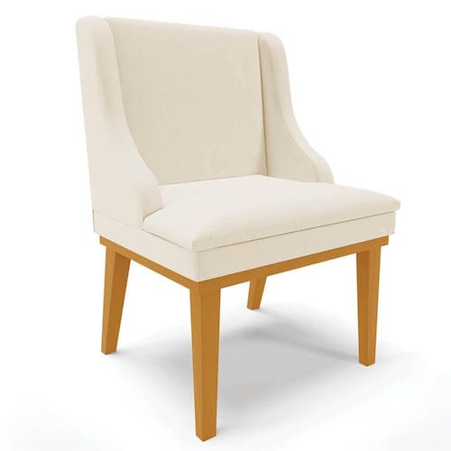 Os melhores momentos que passamos com a nossa família e amigos são ao redor da mesa durante as refeições, por isso, a escolha da cadeira é tão importante. Além de compor a decoração do ambiente, ela precisa ser confortável e resistente, assim como a Cadeira Estofada Lia que suporta até 120 kg, conta com estrutura ecologicamente correta em madeira de eucalipto proveniente de reflorestamento e base fixa em madeira, que agrega qualidade e durabilidade ao produto. Todo o conforto vem da espuma de densidade D-23 e do tecido do assento e do encosto. O revestimento desse móvel incrível é em Linho, que possui propriedades térmicas, alta durabilidade, resistência e sustentabilidade ecológica, sem contar, que seu aspecto natural transmite leveza e elegância.