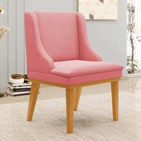 Cadeira Estofada Para Sala De Jantar Base Fixa De Madeira Castanho Lia Suede Rosê - Ibiza