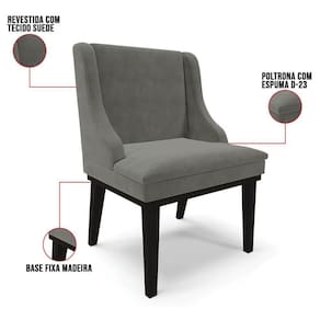 Cadeira Estofada Para Sala De Jantar Base Fixa De Madeira Preto Lia Suede Grafite - Ibiza