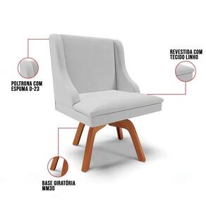 A Cadeira Estofada para Sala de Jantar Base Giratória de Madeira Lia Linho Cinza, da Ibiza é a união de conforto e sofisticação, confira!