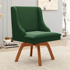 A Cadeira Estofada para Sala de Jantar Base Giratória de Madeira Lia Veludo Verde Esmeralda, da Ibiza, é perfeita para você que busca elegância e conforto, confira os detalhes!