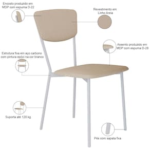 Cadeira Estofada Para Sala de Jantar Village Branco C01 Linho Areia - Lyam Decor - Bege