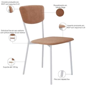 Model: Village | SizeDescription: Altura: 83 cm x Largura: 43 cm x Profundidade: 53 cm | ProductWarranty: 90 dias após o recebimento do produto | ProductHeight: 83 cm | ProductContents: 01 Cadeira | ProductWidth: 43 cm | ProductInstructions: Produto para uso em ambiente interno, nao devendo ficar exposto ao sol, calor e umidade excessivos. | ProductWeight: 6,5 kg | ColorFamily: Bege | Color: Bege | ColorSupplier: Bege | ColorSimple: Bege | OriginState: PR | OriginCountry: Brasil | MaterialFamily: Aço, MDP, Veludo e espuma | SupplierSimpleName: Cadeira Estofada Para Sala de Jantar Village Branco C01 Veludo Bege - Lyam Decor | Material: Estrutura em Aço e MDP, Revestimento em Veludo e espuma | ProductLength: 53 cm | Cor: Bege