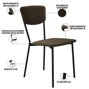 Color: Marrom | ColorFamily: Marrom | ColorSimple: Marrom | ColorSupplier: Marrom Sand | Material: Estrutura em Aço, MDP, Revestimento em Veludo e espuma | MaterialFamily: Aço, MDP, Veludo e espuma | Model: Village | OriginCountry: Brasil | OriginState: PR | ProductContents: 01 Cadeira | ProductHeight: 83 cm | ProductInstructions: Produto para uso em ambiente interno, nao devendo ficar exposto ao sol, calor e umidade excessivos. | ProductLength: 53 cm | ProductWarranty: 90 dias após o recebimento do produto | ProductWeight: 6,5 kg | ProductWidth: 43 cm | SizeDescription: Altura: 83 cm x Largura: 43 cm x Profundidade: 53cm | SupplierSimpleName: Cadeira Estofada Para Sala de Jantar Village Preto C01 Veludo Marrom Sand - Lyam Decor