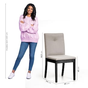 A Cadeira de jantar Tiê Maxx, possui estrutura em madeira maciça de reflorestamento, assento e encosto estofados. As formas puras desta cadeira de jantar ressaltam o detalhe da costura do encosto. O visual clean desta cadeira a torna uma peça ideal para todos os estilos de salas de jantar. Acabamento da Estrutura: Pintura Altura do assento até o chão: 45.0000 Apoio para Braços Estofado: Não codigo_ean: 7909903062296 Complexidade da Montagem: Baixa: pode ser montado por uma pessoa sozinha Cor: Preto/Bege Claro Cor do Produto: Preto/Bege Claro Enchimento do Assento: Espuma D-23 Enchimento do Encosto: Espuma D-23 Escala de Brilho: Semi-Fosco Estrutura do Assento: Chapa MDP 15mm, espuma D23 e tecido Giratória: Não Linha ou Coleção: Tiê Manual de Montagem e Instalação: https://product-hub-prd.madeiramadeira.com.br/734888/documents/f13cad22-08ee-43fe-ad62-e555e951b9b9956342CadeiraTiV.04.pdf Necessita Montagem: Sim Peso: 7 kg Possui Apoio para Braços: Não Possui Apoio Para os Pés: Sim Possui Rodízio: Não Recomendações de Uso, Manutenção e Limpeza: Tire o pó com um pano suave e limpo. Caso necessário utilize um pano macio ou papel absorvente para remover manchas imediatamente após o contato com o produto antes que se infiltrem demais. Não utilizar objetos pontiagudos e/ou abrasivos, bem como solventes e produtos agressivos na limpeza. Não utilize álcool, acetonas, ou qualquer outro produto químico. Não utilize panos coloridos. Não é indicada a utilização de aspirador de pó. Revestimento do Assento: Poliéster Revestimento do Encosto: Poliéster Rodízio com Trava: Não Sistema de Montagem: Parafusos, cavilha, cantoneiras, meia lua e bucha com rosca Tipo de Assento: Fixo Tipo de Encosto: Fixo Tipo de Madeira Maciça: Eucalipto Ean: 7909903062296