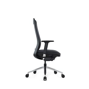 Cadeira de escritório de alta qualidade com opção de costas altas ou médias. Apresenta costas em malha coreana que proporcionam ventilação e um assento de espuma moldada com revestimento em tecido para conforto ergonômico.:
