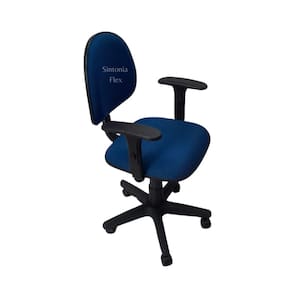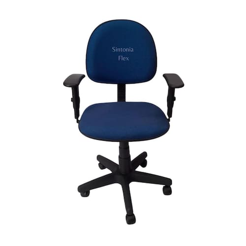 Cadeira executiva giratoria com braço de regulagem de altura e pistão a gás com base de ferro tecido azul Cadeira de escritório Executiva - regulagem de altura a gás - espuma injetada , braço com regulagem - revestida em tecido j.Serrano anti-chama - bordas em pvc flexivel - pintura eletrostatica - base de ferro com capa Marca: Sintonia Flex