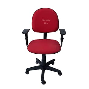 Cadeira executiva giratoria com braço de regulagem de altura e pistão a gás com base de ferro tecido vermelho Cadeira de escritório Executiva - regulagem de altura a gás - espuma injetada , braço com regulagem - revestida em tecido j.Serrano anti-chama - bordas em pvc flexivel - pintura eletrostatica - base de ferro com capa Marca: Sintonia Flex