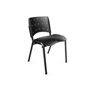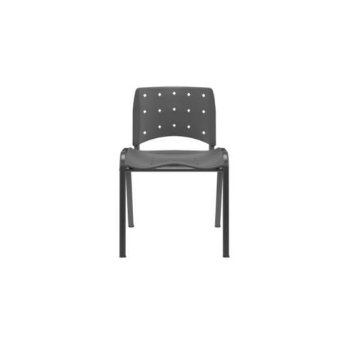 A cadeira é constituída de assento e encosto plásticos, e estrutura metálica. A estrutura é composta de tubos de aço 1010 /1020, sendo os pés e suportes do assento e encosto fabricados em tubos oblongos 16x30 com 1.5mm de espessura de parede soldados com solda Mig á duas travessas horizontais de tubos de aço 7/8 x 1,2mm de espessura formando um conjunto estrutural empilhável. A estrutura recebe tratamentos químicos de fosfatização e pinturas epóxi pó. Para dar acabamento nas pontas dos tubos dos pés e travessas, a estrutura recebe ponteiras plásticas injetadas em polipropileno. A estrutura da cadeira suporta até 110 Kg. Assento confeccionado em polipropileno copolímero (PP) injetado e moldado anatomicamente com acabamento texturizado. Suas dimensões são 465mm de largura, 420mm de profundidade 5mm de espessura de parede. Possui cantos arredondados e é unido á estrutura por meio de 4 (quatro) parafuso 5x30 para plástico. A altura do assento até o chão é de 445mm. O encosto é fabricado em polipropileno copolímero injetado e moldado anatomicamente com acabamento texturizado, com dimensões de 460mm de largura por 330mm de altura, com espessura de parede de 5mm e cantos arredondados, unidos a estrutura por dupla cavidade na parte posterior do encosto que se encaixa a estrutura metálica, travada por dois pinos fixadores plásticos injetados em polipropileno copolímero, dispensando a presença de rebites ou parafusos. O encosto possui furos para ventilação. O assento e o encosto apresentam como opcional alma estofada com espuma laminada de espessura igual a 20mm e densidade 26 (Figura 2 e Figura 3). A alma estofada é montada ao assento por meio de parafusos phillips 3.5x8mm para plástico, e ao encosto por meio de encaixes. Dimensões:Altura: 79,5 cmLargura: 53 cmProfundidade: 55 cm