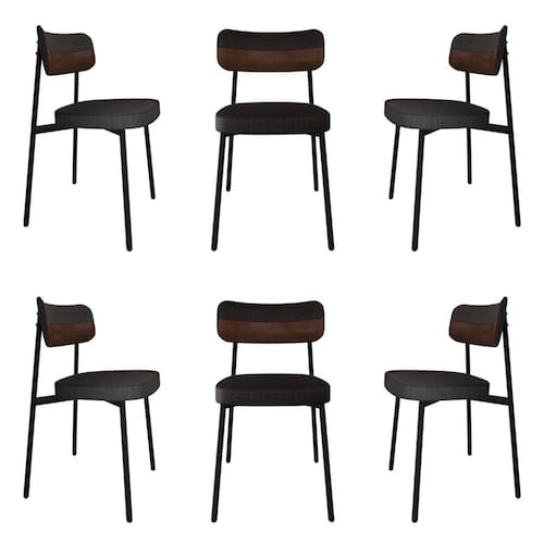Cadeira Fixa com 4 Pés 50 X 44,7 X 83,8 Cm com 6 Unidades Alloa Corriente Preto/Whisky/Preto