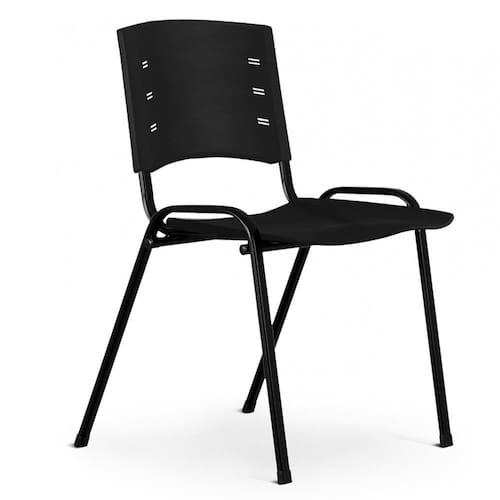 Cadeira Iso com assento e encosto confeccionado por processo de injeção em polipropileno (PP) na cor preta;