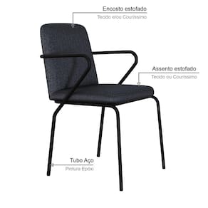 Cadeira Fixa Estofada C/Braços Bloom C/04 un. - Grafite