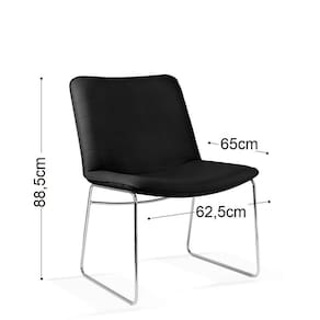 Cadeira Rennes com assento e encosto em madeira laminada estofado com espuma laminada com densidade D28. Revestimento em sintético preto