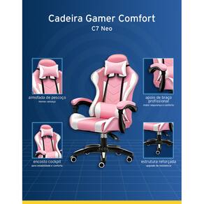 A Cadeira Gamer C7 Neo Comfort eleva sua experiência de jogo e trabalho com um nível superior de ergonomia, sofisticação e conforto. Projetada para quem busca desempenho e durabilidade, essa cadeira combina um design moderno e premium com materiais de alta qualidade para transformar seu setup.