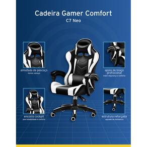 A Cadeira Gamer C7 Neo Comfort eleva sua experiência de jogo e trabalho com um nível superior de ergonomia, sofisticação e conforto. Projetada para quem busca desempenho e durabilidade, essa cadeira combina um design moderno e premium com materiais de alta qualidade para transformar seu setup.