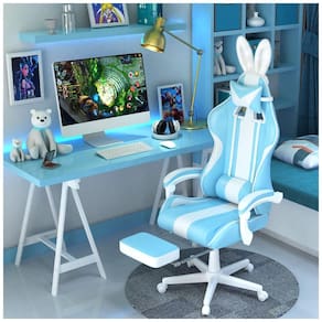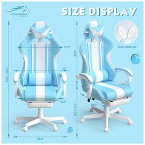 Cadeira de jogos Kawaii para meninas Equipada com orelhas de coelho branco e pelúcia, a cadeira de jogos para meninas Ferghana fica muito adorável e especial. Você pode ajustar o ângulo de dobragem das orelhas de coelho à vontade ou retirá las e usá las. A cadeira de jogo fofa dará um toque agradável à sua sala de jogos. Cadeira de jogos ergonômica A cadeira de jogos para PC foi projetada de acordo com a curva da coluna humana. A combinação do encosto, do apoio de cabeça e do travesseiro lombar se encaixa na curva do corpo do jogador, o que aliviará efetivamente a pressão das costas e permitirá que o jogador se concentre mais no jogo. Recursos multi ajustáveis para atender às suas demandas 1. Encosto de cabeça ajustável e travesseiro lombar de massagem 2. Trancado em qualquer ângulo entre 90 e 135 3. Rodas rotativas suaves 4. 360 giratório 5. Apoio para os pés retrátil 6. altura de 4 polegadas ajustável. 7. Apoios de braços de ligação. Presente de Natal fácil de montar Todos os parafusos são pré instalados na cadeira de jogos de computador, portanto, geralmente leva apenas 15 minutos para ser montado, se você seguir o manual. É um presente de Natal ideal para a garota do jogador. Controle de qualidade rigoroso A cadeira de jogo reclinável é composta por um módulo de esqueleto de corrida premium que pode suportar até 113 kg. A base de aço à prova de explosão de alta resistência e o cilindro de três níveis certificado pela SGS constroem uma forte linha de segurança.