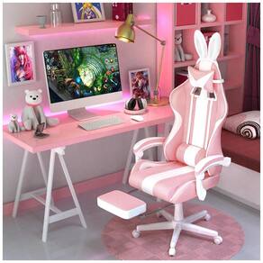 Cadeira de jogos Kawaii para meninas Equipada com orelhas de coelho branco e pelúcia, a cadeira de jogos para meninas Ferghana fica muito adorável e especial. Você pode ajustar o ângulo de dobragem das orelhas de coelho à vontade ou retirá las e usá las. A cadeira de jogo fofa dará um toque agradável à sua sala de jogos. Cadeira de jogos ergonômica A cadeira de jogos para PC foi projetada de acordo com a curva da coluna humana. A combinação do encosto, do apoio de cabeça e do travesseiro lombar se encaixa na curva do corpo do jogador, o que aliviará efetivamente a pressão das costas e permitirá que o jogador se concentre mais no jogo. Recursos multi ajustáveis para atender às suas demandas 1. Encosto de cabeça ajustável e travesseiro lombar de massagem 2. Trancado em qualquer ângulo entre 90 e 135 3. Rodas rotativas suaves 4. 360 giratório 5. Apoio para os pés retrátil 6. altura de 4 polegadas ajustável. 7. Apoios de braços de ligação. Presente de Natal fácil de montar Todos os parafusos são pré instalados na cadeira de jogos de computador, portanto, geralmente leva apenas 15 minutos para ser montado, se você seguir o manual. É um presente de Natal ideal para a garota do jogador. Controle de qualidade rigoroso A cadeira de jogo reclinável é composta por um módulo de esqueleto de corrida premium que pode suportar até 113 kg. A base de aço à prova de explosão de alta resistência e o cilindro de três níveis certificado pela SGS constroem uma forte linha de segurança.