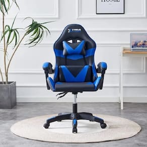 Especificações: Cor: Preto/ Azul Tipo: Cadeira Gamer Ergonômica e Reclinável Material da Estrutura: Quadro interno de metal e base de metal 350mm Revestimento: Poliuretano (PU) de alta qualidade Espuma: Moldada por injeção Densidade: Encosto 24 kg/m³ | Assento 28 kg/m³ Rodízios: Rodas de nylon 60mm Peso Máximo Suportado: 150 kg Ajuste de Inclinação: 90° a 155° Permite repouso Ajuste de Altura: Sim, via pistão a gás Recursos Principais: Rotação 360°, Braços fixos, Almofadas de cabeça e lombar removíveis, Design com apoios laterais e estrutura de ponta. Dimensões do Produto: Altura Máxima: 138 cm Altura Mínima: 122 cm Altura do Assento: 43 cm a 51 cm Ajustável Altura do Chão ao Braço: 68 cm Largura do Encosto: 55 cm Altura do Encosto: 84 cm Largura do Assento: 37 cm Profundidade do Assento: 50 cm Diâmetro da Base: 65 cm