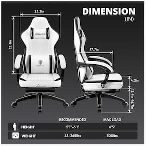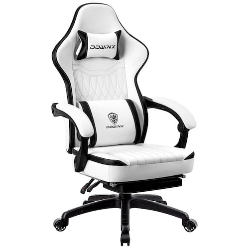 ALMOFADA DE MOLAS BOLSAS autênticos Incorporamos molas ensacadas independentes comumentes em colchões em nossa cadeira de jogos. As músicas distribuem o peso do corpo uniforme e forneçam o adequado do suporte, aliviando efetivamente uma pressão na região lombar. Além disso, o design apresenta os orifícios de ar que aumentam uma capacidade de carga do sistema de molas e, no mesmo tempo, minimizam ou ruem. ÁREA DE ASSENTO MAIOR Projeto de almofada de assento plano de referência uma área de assento mais espaçosa, com pelo menos de largura extra em comparação com as almofadas táticas de cadeiras de jogos. Uma remoção das mais tarde, reduzir a pressão nas pernas, permitir uma experiência de sentar mais relaxada e confortável. COURO PU ALTAMENTE RESPONSÁVEL Esta cadeira de jogo apresenta couro PU altamente respirável, proporcionando ventilação superior 33 vezes mais eficaz que o couro PU tradicional. O couro PU macio e flexível é costurado com habilidade para um nível excepcional de conforto, melhorando sua experiência geral de sentar. As rodas giratórias suaves de 360 graus permitem um movimento fácil e silencioso. O travesseiro lombar com um cabo USB proporciona uma massagem relaxante quando você se sente cansado. O encosto pode ser inclinado de 90 a 150 graus, tornando o adequado para trabalho, jogos, leitura ou cochilos. O apoio de cabeça e o travesseiro lombar também podem ser ajustados para garantir o máximo conforto.