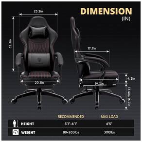 ALMOFADA DE MOLAS BOLSAS autênticos Incorporamos molas ensacadas independentes comumentes em colchões em nossa cadeira de jogos. As músicas distribuem o peso do corpo uniforme e forneçam o adequado do suporte, aliviando efetivamente uma pressão na região lombar. Além disso, o design apresenta os orifícios de ar que aumentam uma capacidade de carga do sistema de molas e, no mesmo tempo, minimizam ou ruem. ÁREA DE ASSENTO MAIOR Projeto de almofada de assento plano de referência uma área de assento mais espaçosa, com pelo menos de largura extra em comparação com as almofadas táticas de cadeiras de jogos. Uma remoção das mais tarde, reduzir a pressão nas pernas, permitir uma experiência de sentar mais relaxada e confortável. COURO PU ALTAMENTE RESPONSÁVEL Esta cadeira de jogo apresenta couro PU altamente respirável, proporcionando ventilação superior 33 vezes mais eficaz que o couro PU tradicional. O couro PU macio e flexível é costurado com habilidade para um nível excepcional de conforto, melhorando sua experiência geral de sentar. As rodas giratórias suaves de 360 graus permitem um movimento fácil e silencioso. O travesseiro lombar com um cabo USB proporciona uma massagem relaxante quando você se sente cansado. O encosto pode ser inclinado de 90 a 150 graus, tornando o adequado para trabalho, jogos, leitura ou cochilos. O apoio de cabeça e o travesseiro lombar também podem ser ajustados para garantir o máximo conforto.