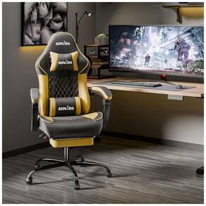 Cadeira Gamer Ergonômica com Apoio para Lombar e Cabeça, SUKIDA, Preto e Amarelo