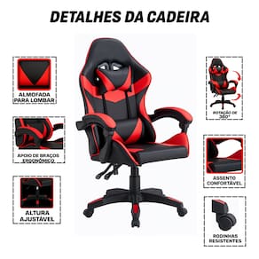 Ajuste facilmente a altura da cadeira para manter uma postura ergonômica e confortável durante longas horas de trabalho ou jogos. Ideal para evitar dores e desconfortos, adaptando-se perfeitamente à altura da sua mesa.