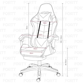 Linha: Trieste | Modelo: CGF002-B | Base: Plástico | Marca: Fortt | Categoria: Gamer | Encosto reclinável: Sim | Graus de inclinação: 135 graus | Ajuste de altura: Sim | Densidade da espuma: 60kgs/m3 | Revestimento: Couro PU | Estrutura: Aço com madeira | Peso suportado: 120kg | Travesseiro para lombar e cabeça: Sim | Com apoio para os pés: Sim