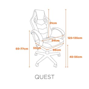 A cadeira Gamer que você precisa! A Gamer Quest é toda em couro ecológico com sua base em nylon. Ela possui o sistema relax e seus braços também são revestidos em couro ecológico, o que torna ela ainda mais confortável. Acabamento da Estrutura: Não se Aplica Altura do assento até o chão: 56 cm Ambiente Principal: Quarto Braço com Ajuste de Altura: Não Complexidade da Montagem: Média: pode ser montado por mais de uma pessoa e/ou necessite de maior conhecimento para montagem Cor: Preto/Azul Cor da Base: Preto Cor do Produto: Preto/Azul Empilhável: Não Encosto Reclinável: Sim Escala de Brilho: Fosco Estrutura do Assento: Madeira Estrutura do Encosto: Madeira Giratória: Sim Itens Inclusos: 1 Cadeira, Kit Ferragens, Manual de Montagem Linha ou Coleção: Quest Manual de Montagem e Instalação: https://cdn2.madeiramadeira.com.br/atributo/fratini/1112138-cadeira-gamer-quest-ref-283.pdf Material da Base: Aço/Nylon Necessita Montagem: Sim Origem do Produto: Importado Peso: 15,69 kg Possui Apoio para Braços: Sim Possui LED: Não Possui Rodízio: Sim Recomendações de Uso, Manutenção e Limpeza: Pano úmido Revestimento do Assento: Couro Ecológico Revestimento do Encosto: Poliuretano Sistema de Montagem: Parafusos Suporta Até (kg): 120 kg Tipo de Assento: Regulável Tipo de Encosto: Regulável Tipo de Madeira Maciça: Pinus