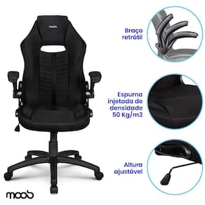 Cadeira Gamer Moob Force Giratória Braços Ajustáveis e Função Relax Preto