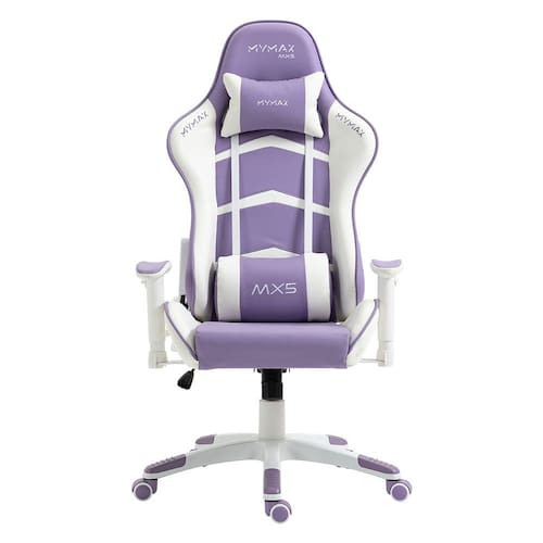 Características Marca: Mymax Nome produto: Cadeira Gamer MX5 Giratória Branco e Roxo Modelo: Cadeira Gamer MX5 Cor: Branco/Roxo Revestimento: Estofamento em tecido sintético PU Estrutura: Metálica Superfície de Apoio: Espuma com densidade controlada - 35 Assento / 22 Encosto Peso Máximo Suportado: 150kg Ajuste Altura: Sim - 10cm Encosto Regulável: Sim - Permite inclinação de até 180° Função Balanço: Sim - Função de balanço permite inclinar o assento em até 12° Gás: Classe 3 - 100 mm Diâmetro Pés: 70 cm Rodas: 50mm Braços: Regulagem 2D (direita/esquerda e altura) Almofadas: Almofadas para apoio lombar e de pescoço. Ambas com logo bordado Parafusos: 14 Altura do chão até apoio de braço: 59 - 76cm Altura do chão até assento: 45 - 55cm Altura do encosto: 78cm Largura do assento: Interna 34cm / Externa 53cm Profundidade interna do assento: 53cm EAN: 7898554985774 Informativo de Garantia: 12 meses de garantia (9 meses de garantia contratual junto ao fabricante + 3 meses referentes à garantia legal, nos termos do artigo 26, II, do Código de Defesa do Consumidor)