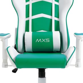 Características Marca: Mymax Nome produto: Cadeira Gamer MX5 Giratória Branco e Verde Modelo: Cadeira Gamer MX5 Cor: Branco/Verde Revestimento: Estofamento em tecido sintético PU Estrutura: Metálica Superfície de Apoio: Espuma com densidade controlada - 35 Assento / 22 Encosto Peso Máximo Suportado: 150kg Ajuste Altura: Sim - 10cm Encosto Regulável: Sim - Permite inclinação de até 180° Função Balanço: Sim - Função de balanço permite inclinar o assento em até 12° Gás: Classe 3 - 100 mm Diâmetro Pés: 70 cm Rodas: 50mm Braços: Regulagem 2D (direita/esquerda e altura) Almofadas: Almofadas para apoio lombar e de pescoço. Ambas com logo bordado Parafusos: 14 Altura do chão até apoio de braço: 59 - 76cm Altura do chão até assento: 45 - 55cm Altura do encosto: 85cm Largura do assento: Interna 34cm / Externa 53cm Profundidade interna do assento: 53cm EAN: 7898554985781 Informativo de Garantia: 12 meses de garantia (9 meses de garantia contratual junto ao fabricante + 3 meses referentes à garantia legal, nos termos do artigo 26, II, do Código de Defesa do Consumidor)