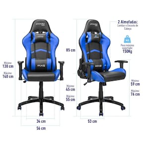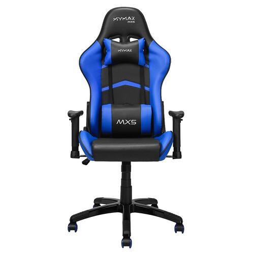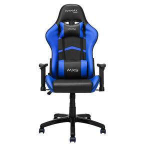 Características Marca: Mymax Nome produto: Cadeira Gamer MX5 Giratoria Preto/Azul Modelo: Cadeira Gamer MX5 Cor: Preto/Azul Revestimento: Estofamento em tecido sintético PU Estrutura: Metálica Superfície de Apoio: Espuma com densidade controlada - 35 Assento / 22 Encosto Peso Máximo Suportado: 150kg Ajuste Altura: Sim - 10cm Encosto Regulável: Sim - Permite inclinação ajustável até 180° Função Balanço: Sim - Função de balanço permite inclinar o assento em até 12° Gás: Classe 3 - 100mm Diâmetro Pés: 70cm Rodas: 5cm Braços: Regulagem 2D (direita/esquerda e altura) Almofadas: Almofadas para apoio lombar e de pescoço. Ambas com logo bordado Parafusos: 14 Altura do chão até apoio de braço: 59 - 76cm Altura do chão até assento: 45 - 55cm Altura do encosto: 85cm Largura do assento: Interna 34cm / Externa 53cm Profundidade interna do assento: 53cm EAN: 7898554984074 Informativo de Garantia: 12 meses de garantia (9 meses de garantia contratual junto ao fabricante + 3 meses referentes à garantia legal, nos termos do artigo 26, II, do Código de Defesa do Consumidor)